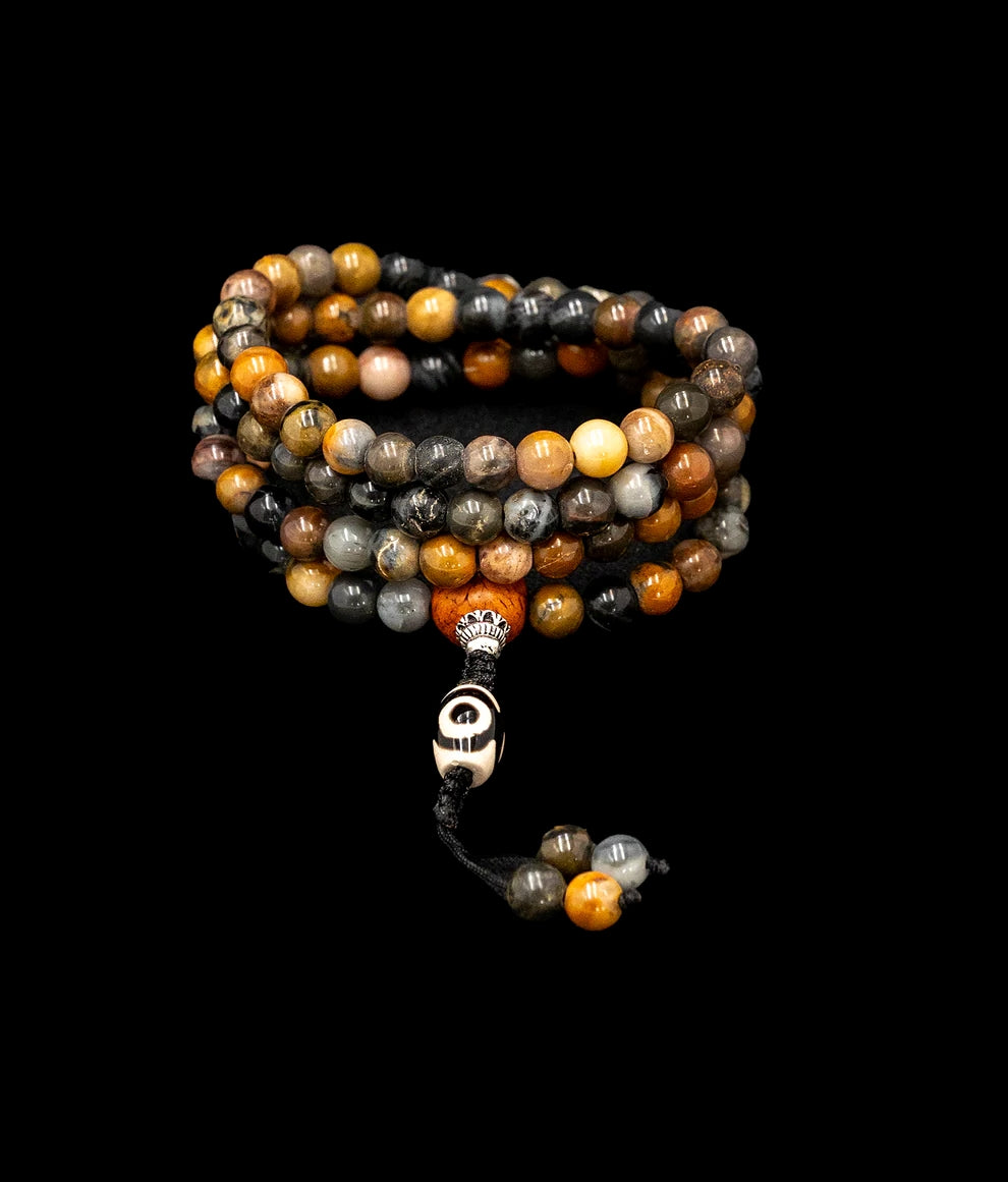 A powerful spiritual tool, this Jasper Stone Mala is handcrafted with grounding jasper beads, sacred Bodhi seeds, and a Tibetan Dzi bead for protection. Jasper provides stability and strength, Bodhi seeds support enlightenment and mindfulness, and the Dzi bead brings ancient symbolism of spiritual protection and clarity. Ideal for deep meditation, energy work, or intentional daily wear.