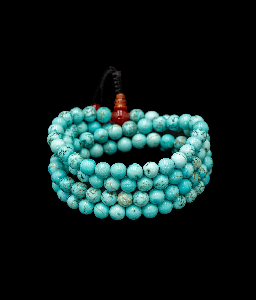 Harness the soothing power of turquoise and the energizing warmth of carnelian with this handcrafted mala. The calming blue turquoise promotes protection, communication, and emotional balance, while the vibrant carnelian guru bead inspires motivation and creativity. Perfect for mantra meditation, energy alignment, or as a meaningful spiritual accessory.